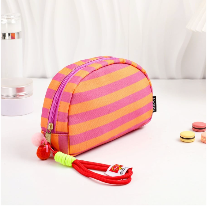 Cute Striped Make-up Bag - pink/orange