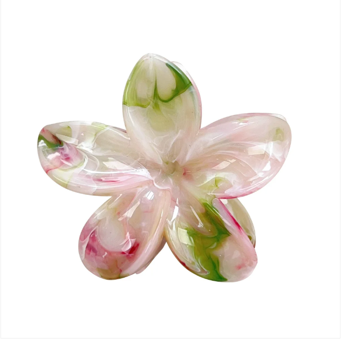 Shiny Exotic Flower Hair Clip - green/pink